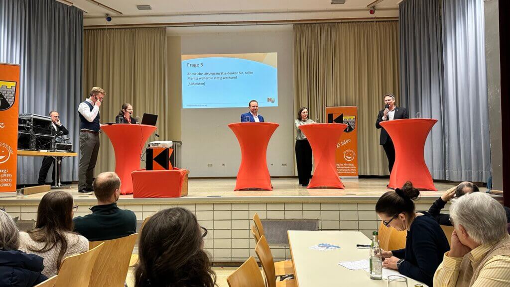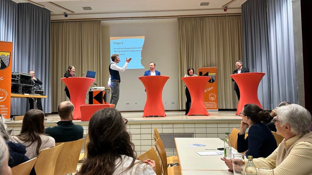 Über 260 Meringer Bürgerinnen und Bürger füllten die Mehrzweckhalle in Mering, als pünktlich um 19:30 Uhr eine der entscheidenden Veranstaltungen im Vorfeld der Wahl begann. Das Ziel des Abends: Die Kandidaten für das Bürgermeisteramt hautnah erleben und ihre Visionen für Mering vergleichen.